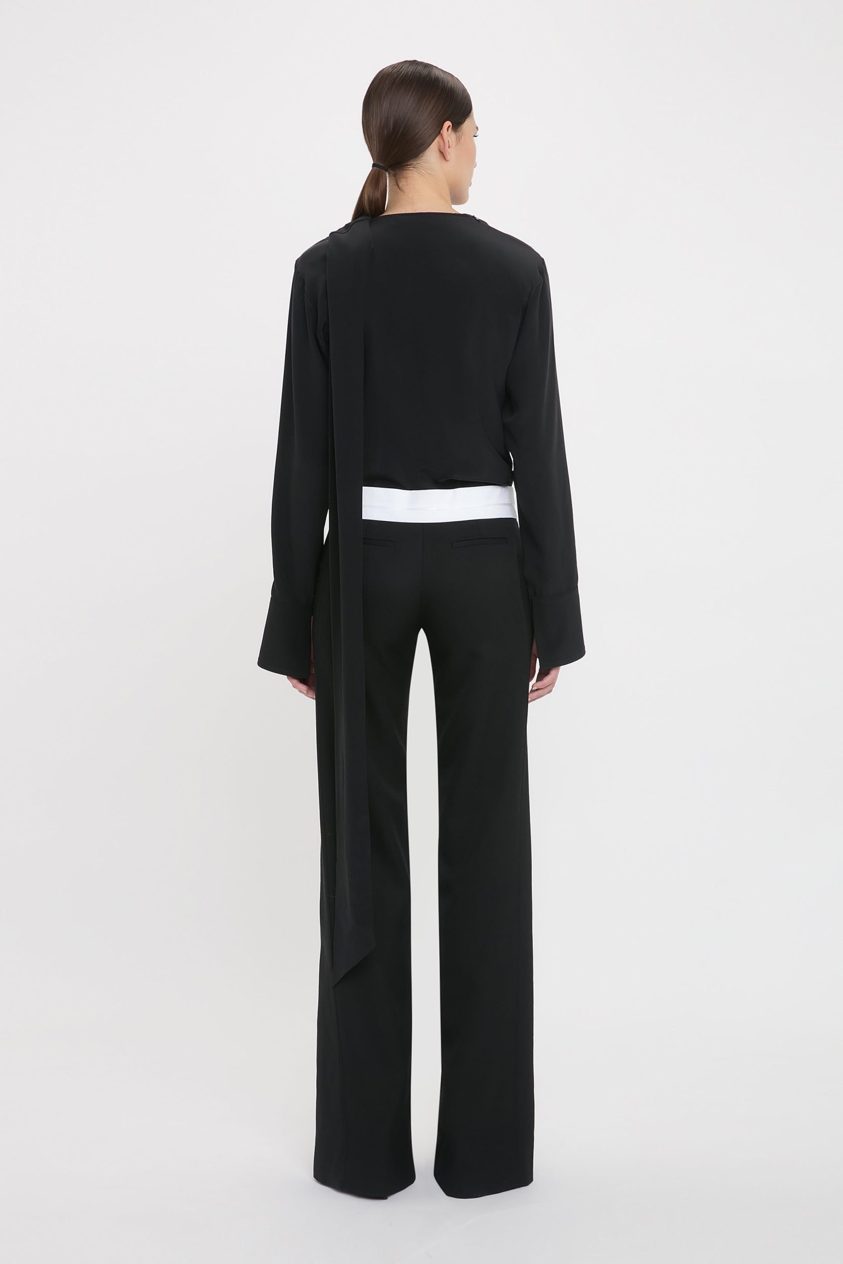 A fresh perspective is brought to the house’s tailoring archive in these Side Panel Trouser In Black. Exquisitely cut from a grain de poudre blend, they have a 1990s-inspired low-rise waistline and flattering wide-leg silhouette. The exposed waistband in contrasting white adds a distinctive design feature, while front side seam pockets bring a traditional finishing touch.