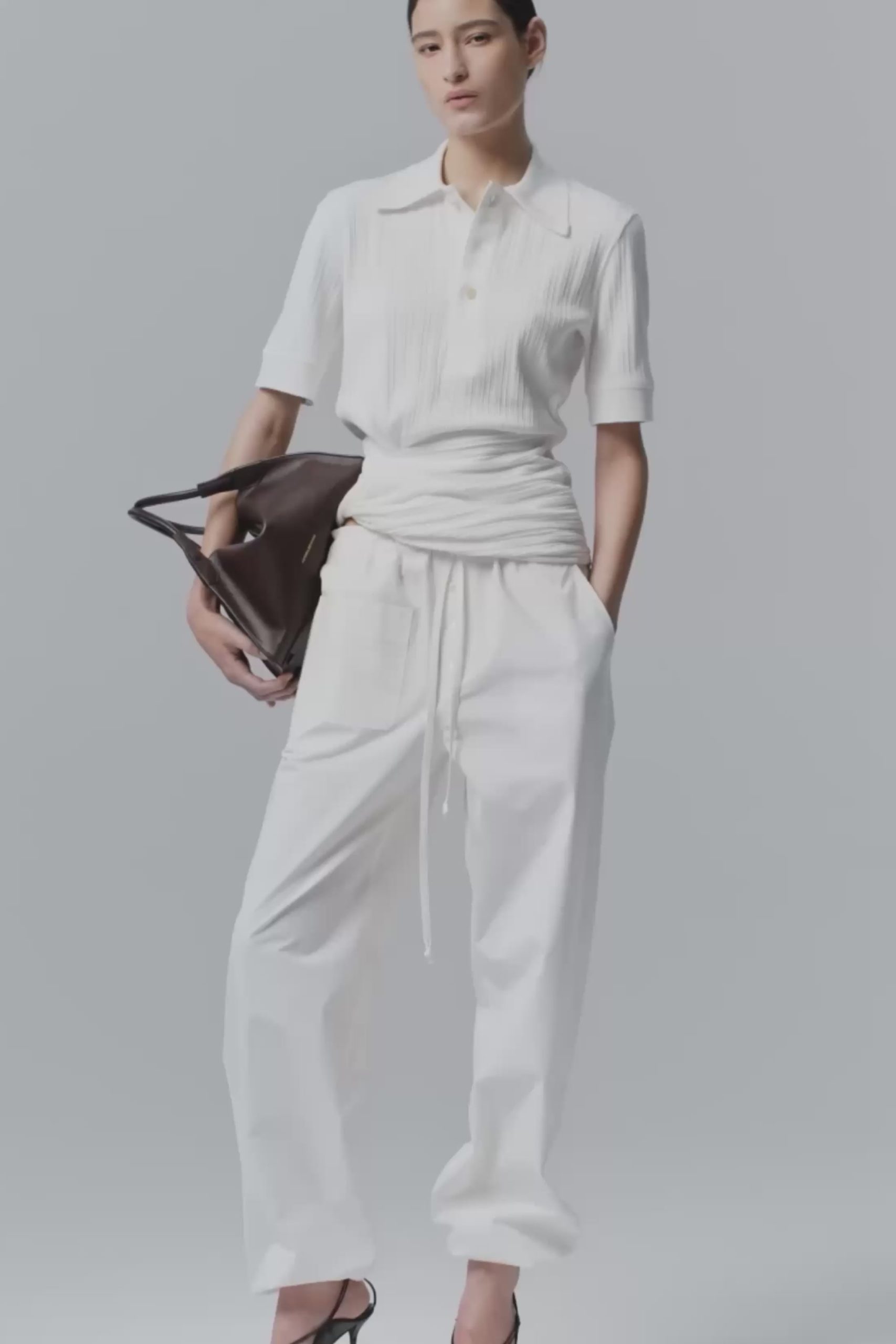 The classic polo top is reimagined with a tactile twist detail and asymmetric cut at the hemline. Crafted from organic ribbed cotton, the Twist Detail Polo Top in White has a traditional polo collar with buttons and is finished with an embroidered Victoria Beckham monogram at the centre back neckline.
